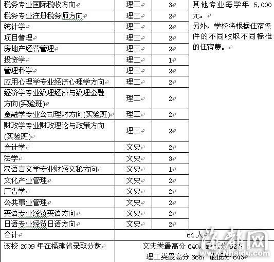 海都網訊 (本網記者 葉琦)中央財經大學今年計劃面向我省招收64人,其中文史類16人,理工類48人,招生總量比去年略有減少。今年該校將新增兩個專業方向,為文科“日語專業經貿日語方向”和理科“會計學專業國際管理會計方向”,同時,國際經濟與貿易專業國際貿易(金融風險管理方向、英語專業經貿英語方向、日語專業經貿日語方向)3個專業方向,只招收有專業志愿的考生。