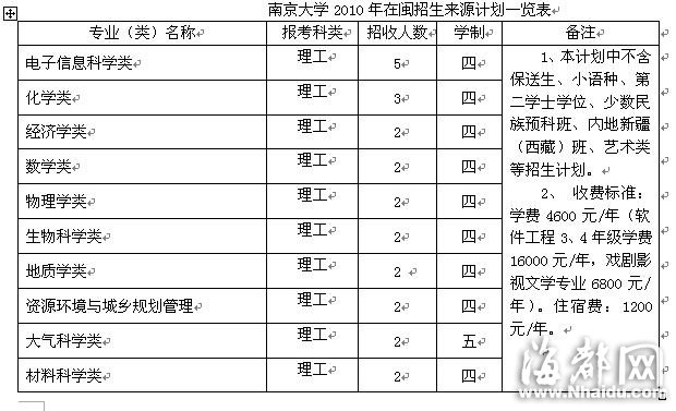南京大學今年計劃面向福建招收56人,其中文史類17人,理工類39人,文史類招生計劃比去年略有減少。今年南大的招生亮點是:考生錄取專業時的分數級差有調整,從“3、2、1、0”調整為“2、1、1、0”,專業級差縮小可以更大程度的滿足考生專業志愿。